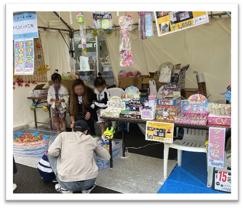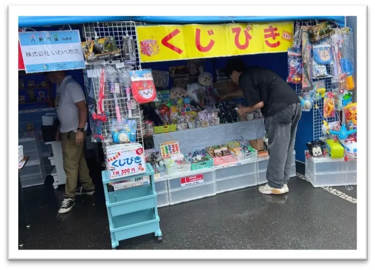 くじびき、射的、輪投げ、ヨーヨー釣りなど、なんでもござれ。