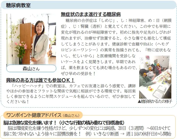 お二人とも、商店街に「みきファミリークリニック」を構える三木先生からの「ハッピーハッチで教室を」との打診に応えて講師を引き受けられたそうです。