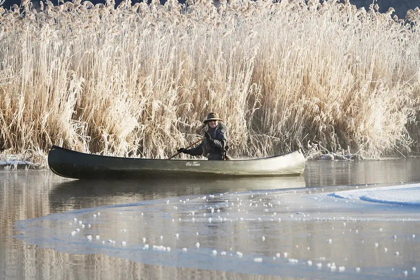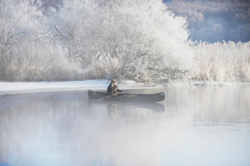 確かに木々まで凍りつく厳冬期の釧路湿原には大自然への畏怖すら覚えるが、小川さんのカヌーを包み込むように湧き上がるけあらしは、朝陽に照らされ金色に輝き、厳しさの中にぬくもりを感じた筆者であった。