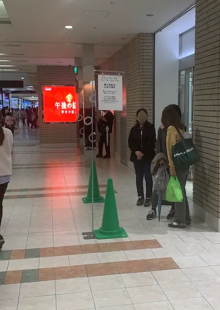 連休最終日ということもあり、また確実に購入したかったので、前回の経験も踏まえて、販売開始90分前に現地到着!入口前を見ると誰もいない。。。これはもしかして楽勝か?と気を緩めたところ。。。