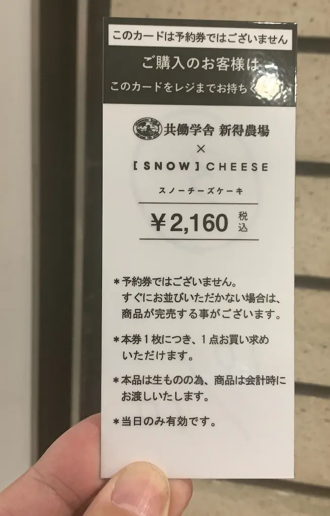 スノーチーズケーキは、他の商品と異なり、毎日夕方16時から販売開始。初日は大々的な告知をしたわけでもないのに、15時45分に購入券を配布して、16時15分はレジを閉めたとのこと。