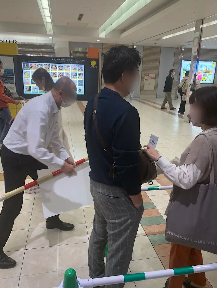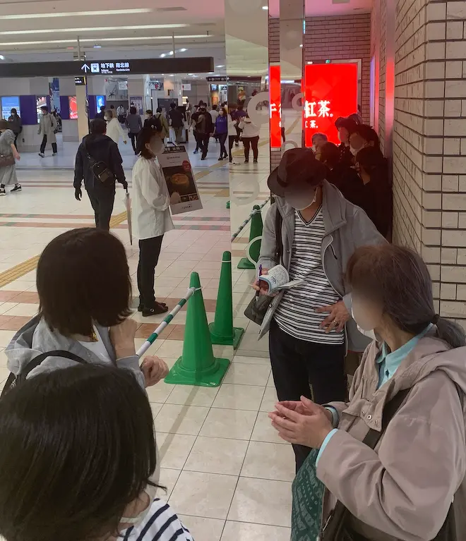 購入券配布後、販売開始予定時刻5分前に、先頭から5名ずつ順番に店内へ誘導されます。