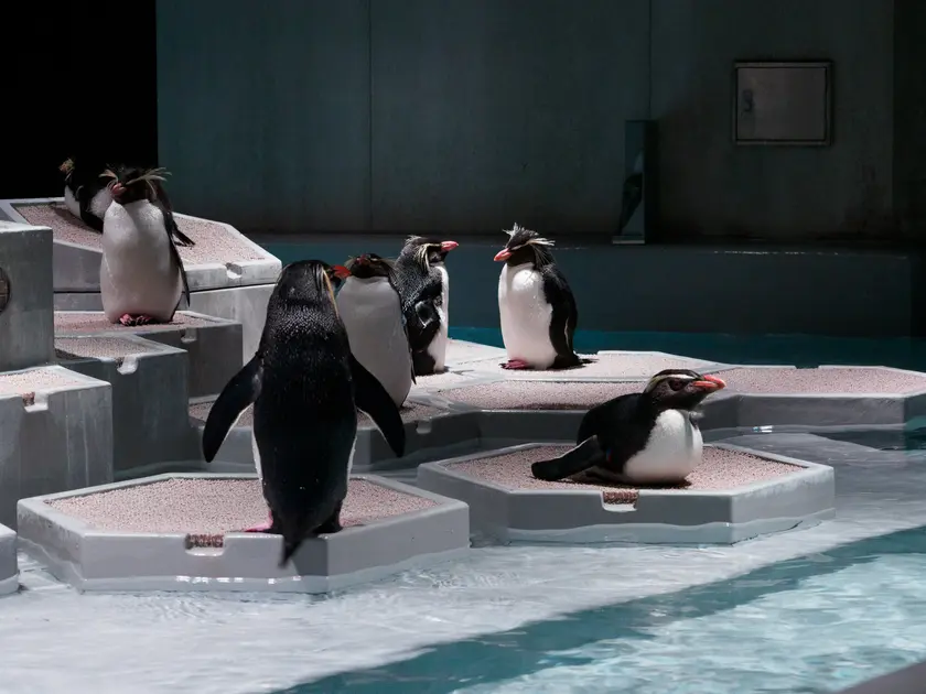 キタイワトビペンギンを間近で見ることができます。六角形ブロックの上をジャンプして移動するキタイワトビペンギンの姿は、とってもかわいいです。