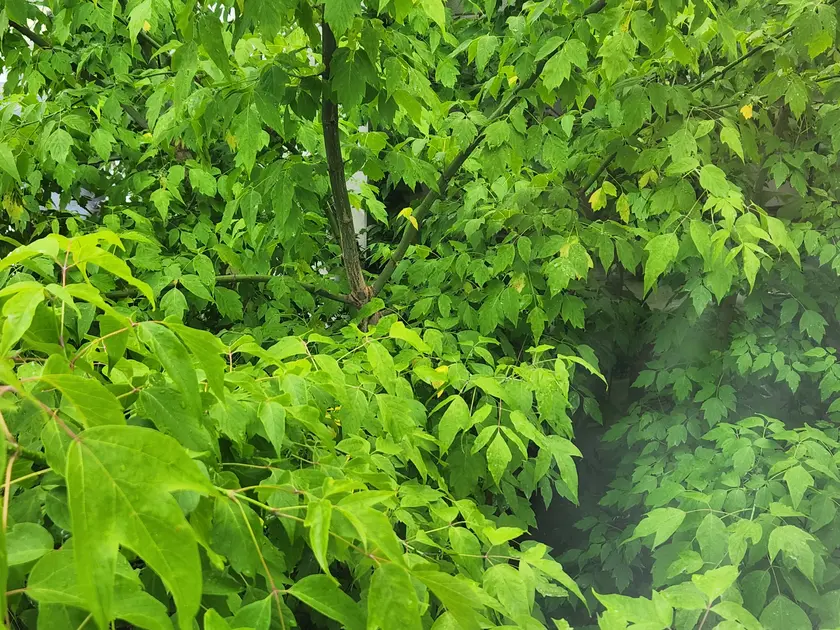 とはいえ、これだけ緑が生い茂る場所なら、スズメバチも「巣」みやすいでしょうよ・・・。いつの間にか、家の裏の木がめちゃくちゃ育ってました。