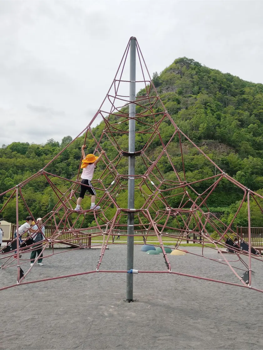 青虫のような可愛い遊具やターザンロープ、ロープジャングルジムなども設置されており、子どもの好奇心と運動能力を引き出す設計がされています。