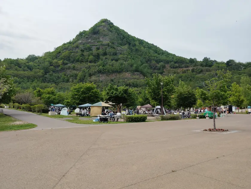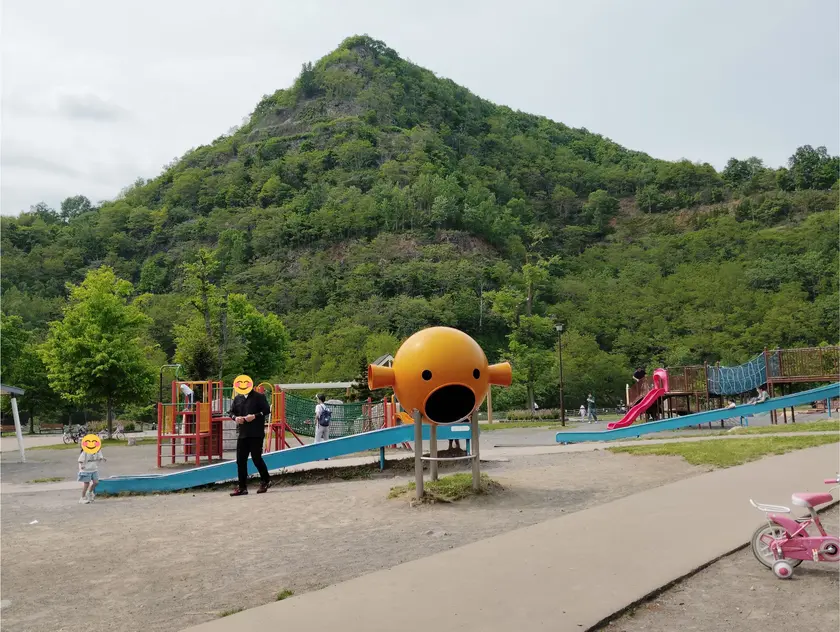 筆者イチオシは、遊具広場と野球場の間にある小さな丘。ここに登ると、真正面にそびえる手稲山の雄大な景色が広がります。