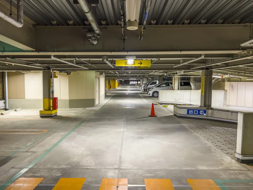 8階建ての広々とした立体駐車場があり、500台収容可能です。全天候型で、であえーるに直接アクセス出来る連絡通路もあるので、お子さま連れでも安心。