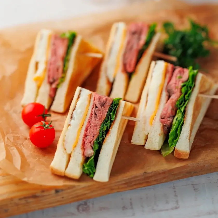 ローストビーフとマッシュポテトのクラブハウスサンド