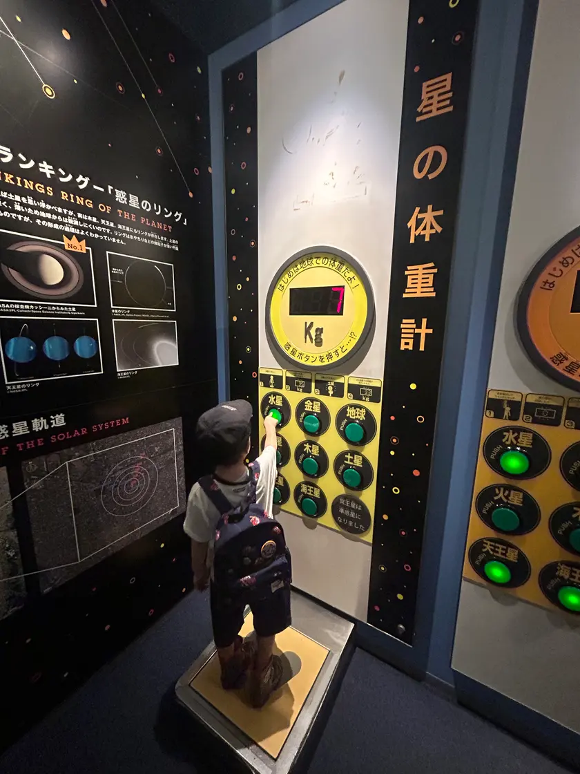 水星や金星、土星など、地球以外の星に行くと自分の体重がどのくらいになるのかボタンを押して確認できる「星の体重計」や、スタートボタンを押すと竜巻がぐるぐる〜っと発生する「竜巻発生装置」、北海道で見られるさまざまな岩石に触れられる展示など、盛りだくさん!