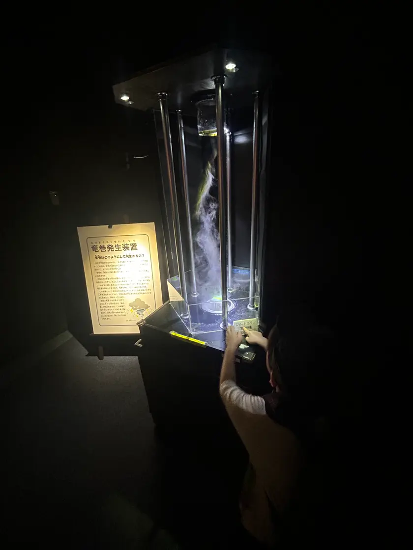 毎日実施されている「サイエンスショーコーナー」では、現在「気象」をテーマに、雲や竜巻の発生を再現するショーを開催中(2025年8月〜11月)。身近な天気の変化やその原因について学べる楽しいショーは一日4回、各回15分程度なので、小さなお子様にもおすすめです。