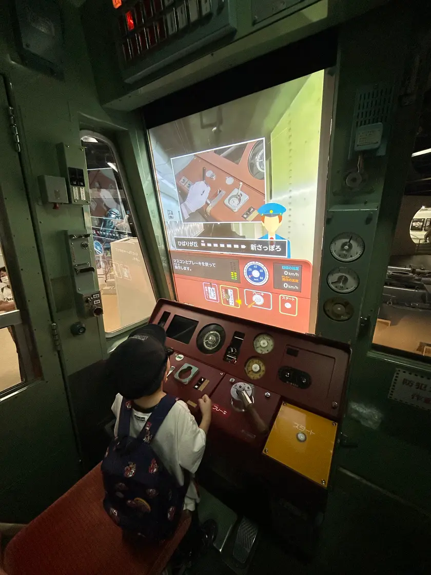 札幌で実際に活躍してきた地下鉄・除雪車を間近で観察できるエリアでは、実物の運転席に座ることもできました。地下鉄の運転席では、映像を見ながら運転の疑似体験も!憧れの運転士さんになった気分でブレーキやマスコンの操作ができて大満足。体験時間が4分間ほどあるので待ち時間は発生しやすいですが、待ってでも体験する価値ありです!