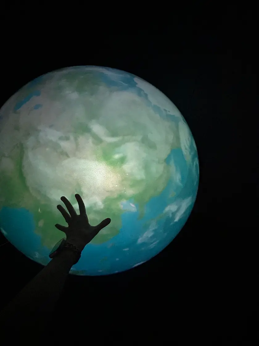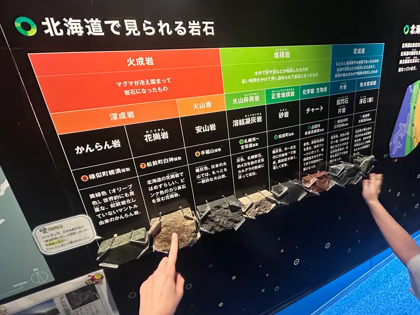 直径20mの巨大な地球儀や、触って学べる光る地球儀など、写真映えスポットもたくさん。このエリアは宇宙・太陽系・地球・北海道の4つのコーナーに分かれており、宇宙の誕生から北海道の成り立ちまで、触れて体験しながら学ぶことができました。じっくり見ているとあっという間に数十分経過。