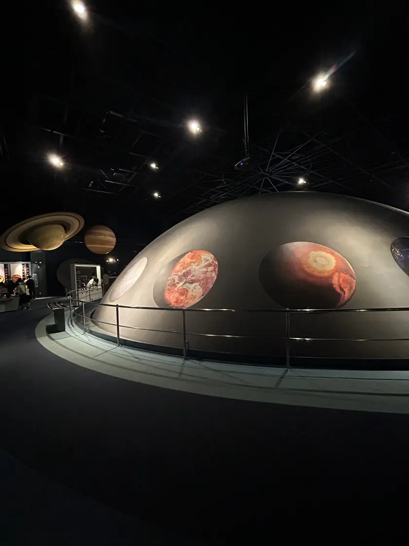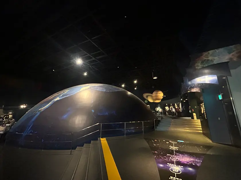 まずは「天文・地球科学エリア」からスタート!大きな地球や、空に浮かんでいるような惑星の展示に早速気持ちが高まります!