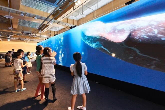 館内には先端技術を使った、ここにしかないコンテンツが目白押し! 中でも注目すべきは、幅14.5m、高さ2.5mの巨大高精細LEDディスプレイ「メディアウォール」。スケールの大きなCG映像が次々と投影され、子どもたちの好奇心を刺激します。一番人気のプログラムは函館らしく「イカの群れ」。楽しい仕掛けで水中を泳ぐイカの群れを自由に操作できます。