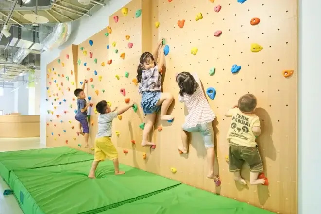 旧イトーヨーカドーを改装して2024年12月に新たに誕生した複合商業施設「グランディールイチイ」の2階のほぼ半分を使用した巨大室内遊び場の「いちいの森」。道南杉を使ったぬくもりある施設で、中央にはボールコーナーがあり、壁面にはクライミングウォールとすべり台がびっしりと並び、子どもたちが安心して走り回ることが出来る空間です。