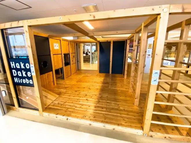 函館空港の国内線旅客ターミナル3階にある「HakoDake Hiroba(ハコダケ広場)」は、道南杉をはじめ、北海道産の木材をふんだんに使った不思議な遊び場。いくつもの木の箱を組み合わせたような遊び場は、「広場ユニット」「迷路ユニット」「すべり台ユニット」に分かれていて、各ユニットを自由に行き来しながら、思い思いに遊ぶことができます。滑ったり、かくれんぼをしたり、遊び方は無限大。飛行機に乗る予定がある場合は、ここでたっぷり遊ばせ、機内でのお昼寝を促すのも◎。