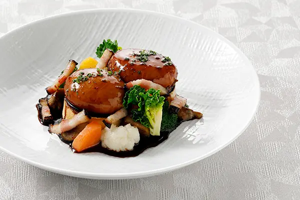 北海道の旬の食材を活かした「タテルヨシノ」のディナーは、どうみん割限定の特別コース。その土地の恵みを生かした“テロワール料理”は、一皿ごとに繊細な技法と美しい盛り付けで楽しませてくれます。