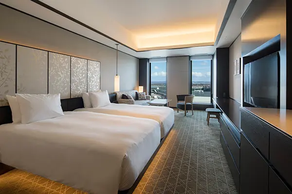 ツイン、ダブル、アクセシブルの3タイプをご用意しており、滞在スタイルに合わせて選べるのも魅力。窓の外には飛行機の往来や広がる空があり、空港ホテルならではの非日常を感じることができます。