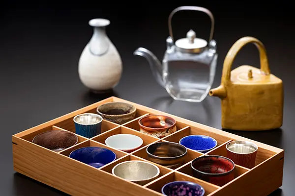 全国から取りそろえた銘柄を、好みのぐい呑みで味わえるのが下鴨茶寮ならでは。料理とともに選ぶ一杯が、夜の時間をより豊かにしてくれます。