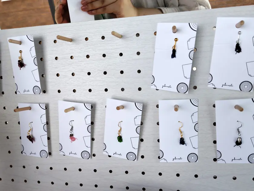 特に印象に残ったのが、「yukinosita」というアクセサリーのお店。紙と木を主な素材として作られたアクセサリーは、とても軽くて繊細。「これが紙と木!?」と驚くほどの仕上がりでした。