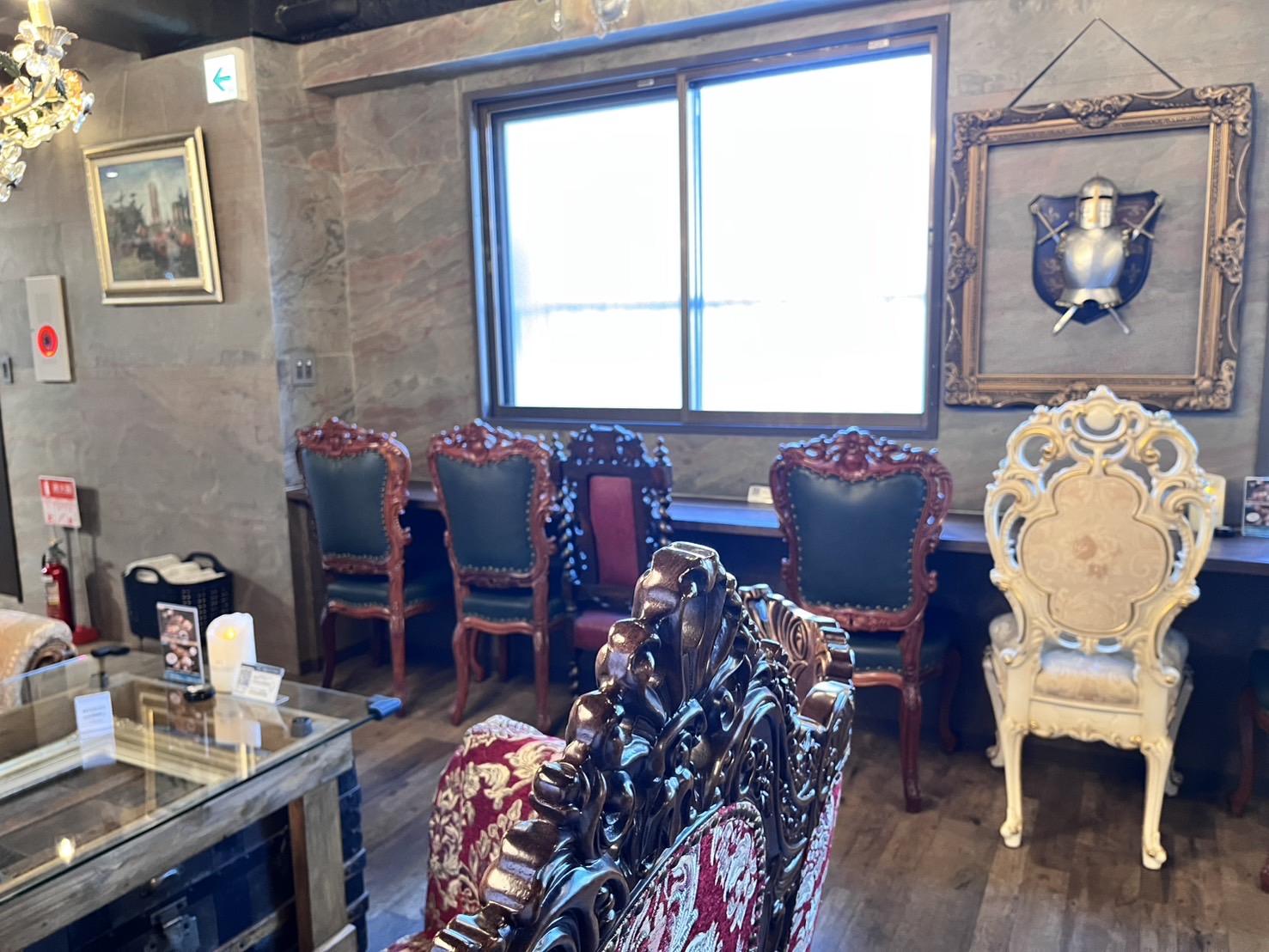 中世ヨーロッパをモチーフにしたインテリアが魅力的なエリアです。ロイヤルな装飾が施されたヴィンテージ家具や煌びやかなシャンデリアが非日常を演出してくれます。