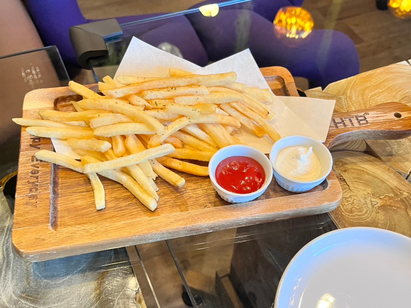 揚げたてホクホクのフライドポテトに、ケチャップとサワークリームをディップしていただきます。サワークリームは酸味が強すぎずコクがあり、ついつい手が伸びてしまう美味しさでした。