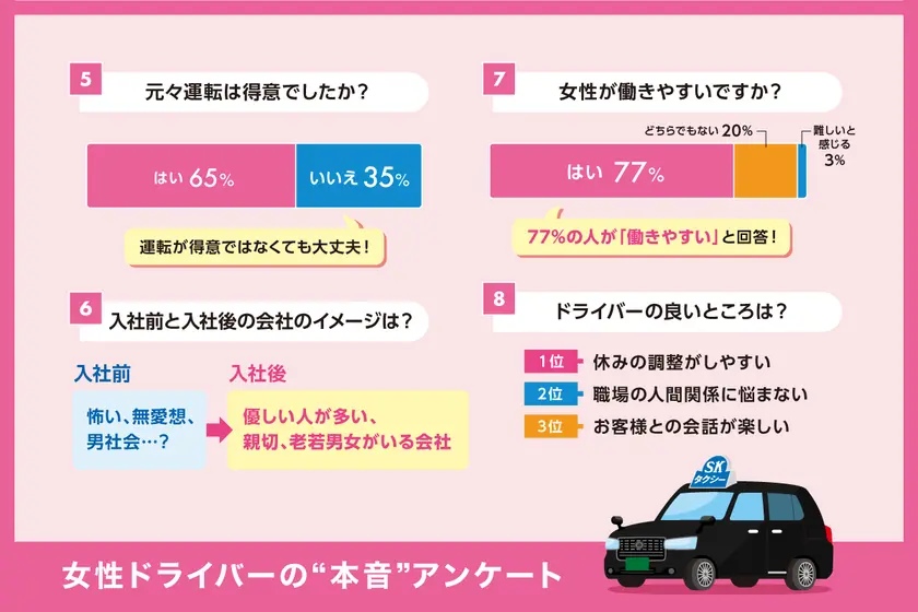 この記事では、グループ5社の女性ドライバーに“本音”でアンケートを取った結果をまとめましたので、ご紹介いたします。