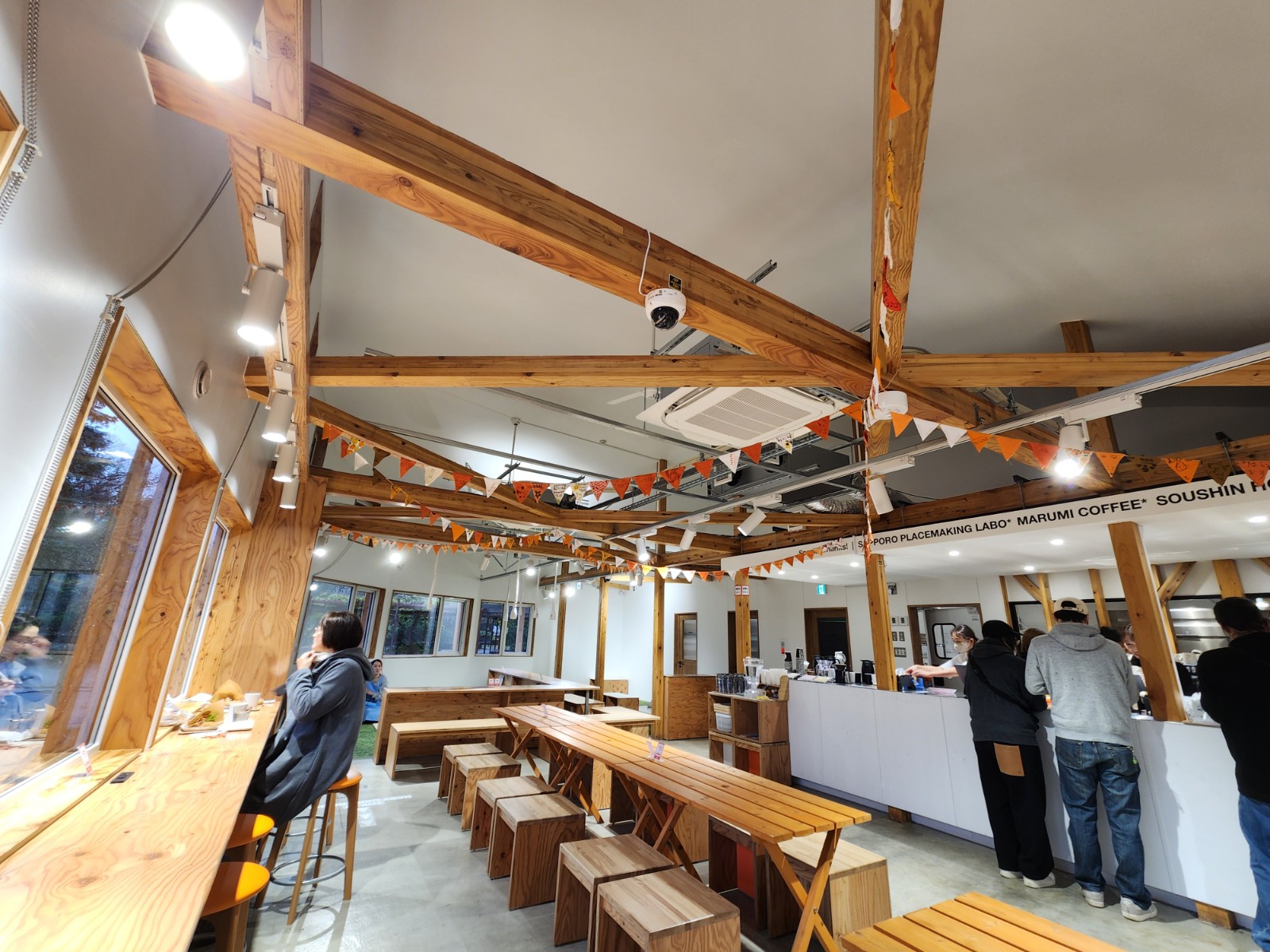 カフェは、窓側10席、4人掛けテーブルが5卓、奥には子どもをシッターさんに預けて見守りながら座れるカウンター席が8席ほどあります。