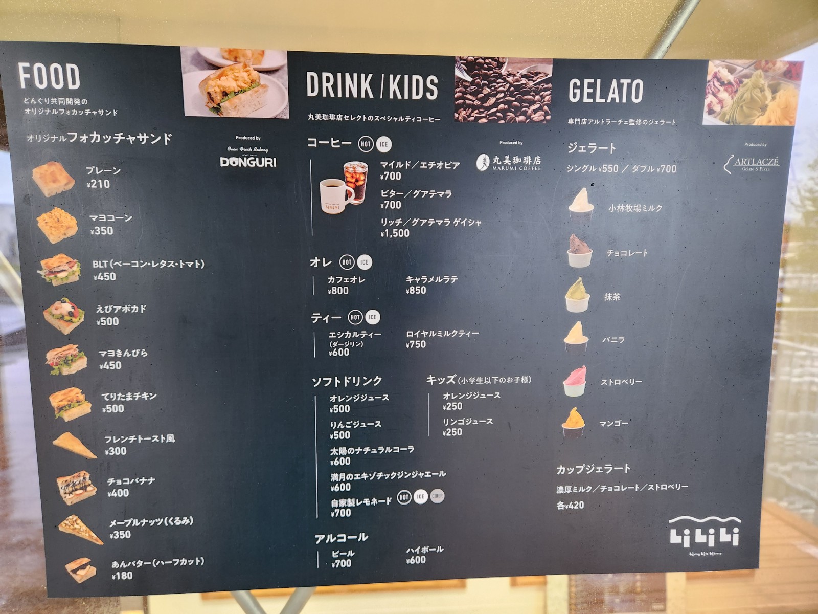 あわせて注文できるドリンクは札幌の人気店「丸美珈琲店」がセレクトしたスペシャリティコーヒー。甘いものが食べたい方や子どもには「アルトラーチェ」監修のジェラートも購入できます。