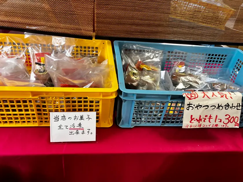 おやつ詰め合わせ1人2袋まで。定価¥324の「どどらー」が入ってる段階で元は取れてるぞ。
