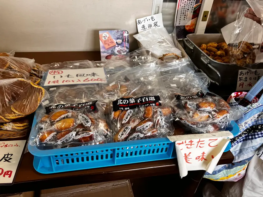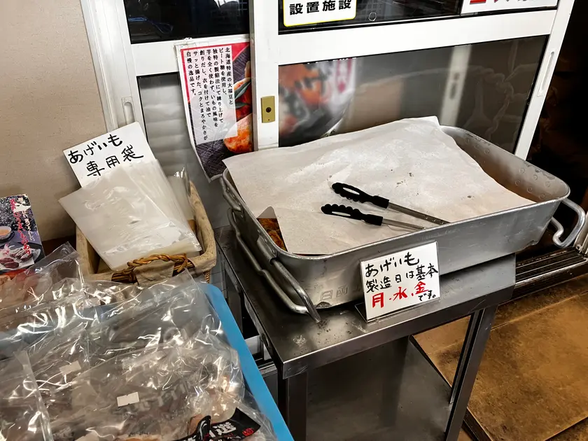 店舗に入って正面に、月・水・金限定発売の「あげいも1個60円」があります。