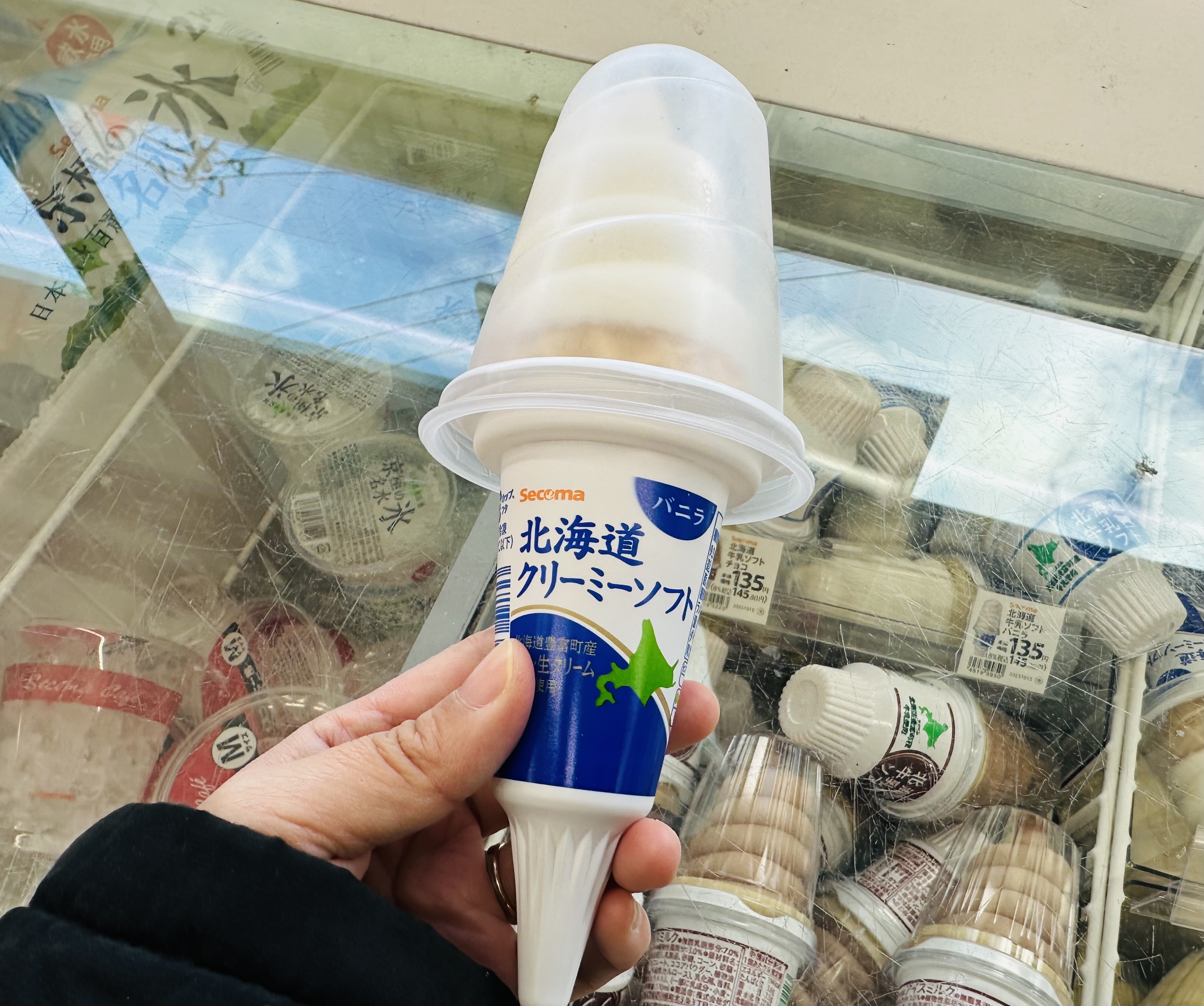 ここでは、ソフトクリーム型のセコマアイスを紹介します。冬の北海道は、ソフトクリーム屋さんが冬季休業していたり雪で食べに行くのが大変だったりしますよね。