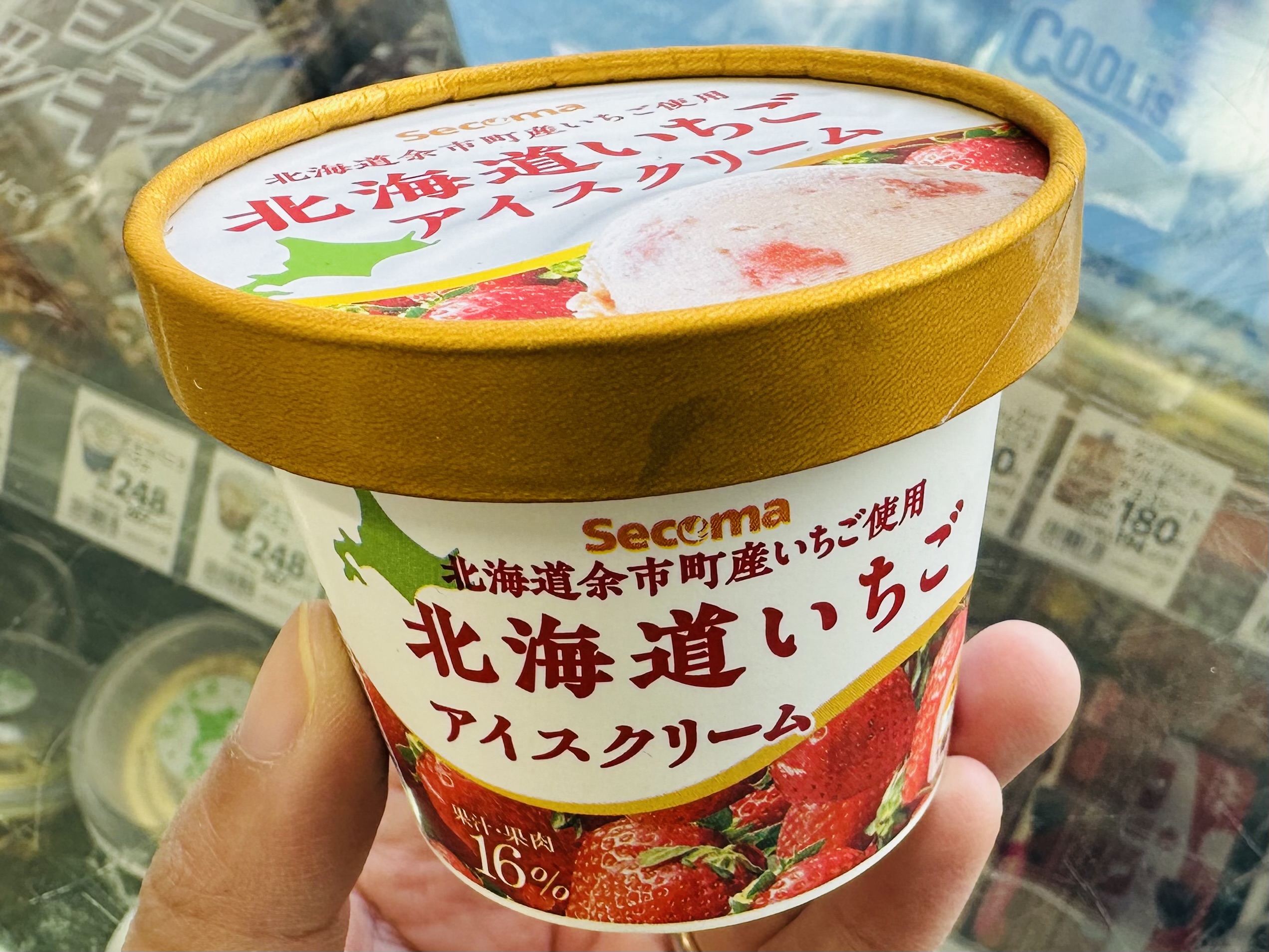 余市町産のいちご果汁・果肉を16%使用している北海道いちごアイスクリームは、果肉たっぷりで濃厚。ミルク感といちごの香りが口の中で広がり、甘酸っぱさとコクを味わえます。ちょっぴり贅沢に本格アイスを堪能したい方にイチオシです。