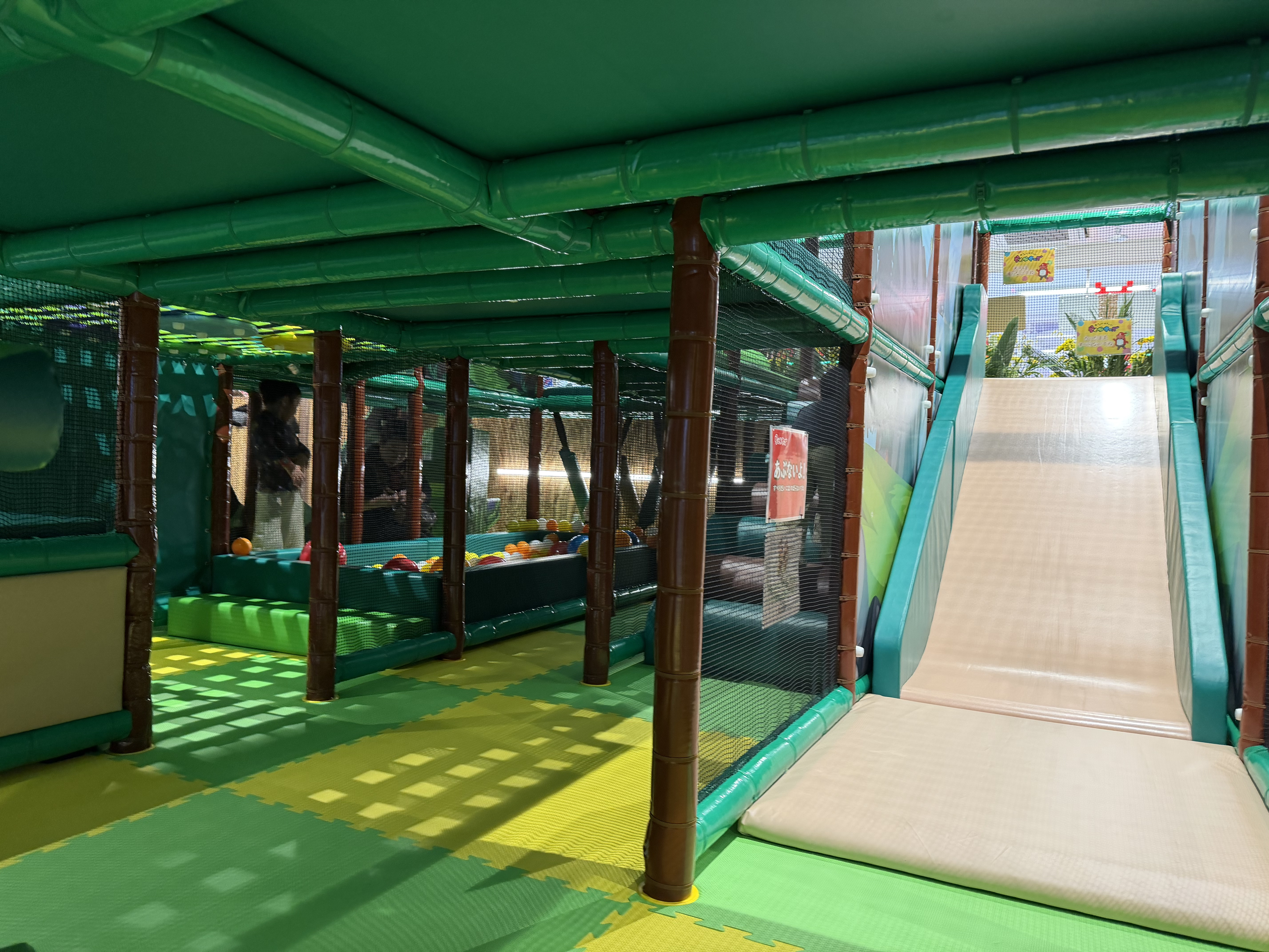 また、施設内ではスタッフの方が常に数名見回りを行なっており、正しい遊具の使い方をするよう声がけをするなどしていました。同時にお掃除や除菌もされている様子でとても清潔感がありました。