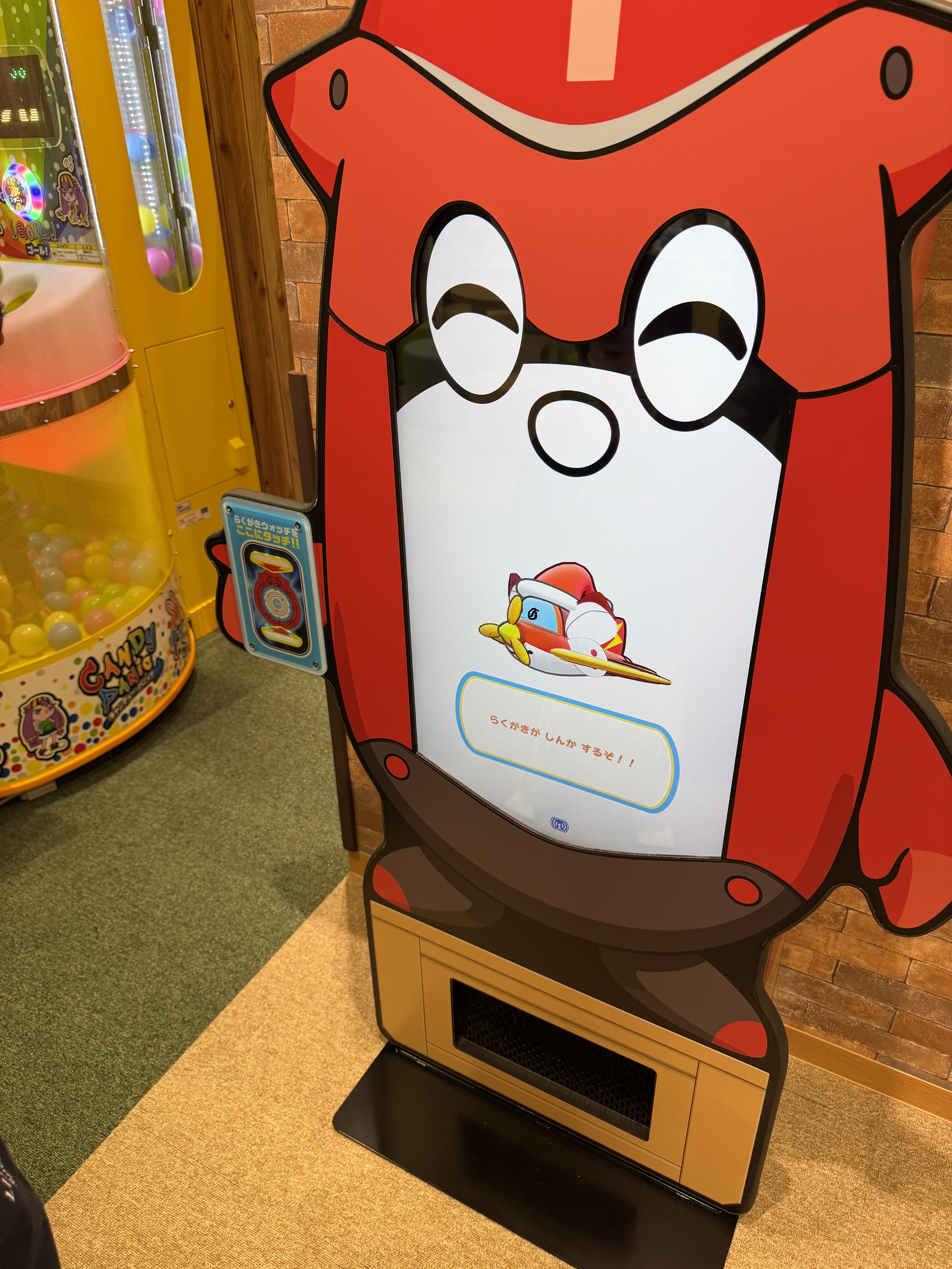 施設内には写真のような「みちしるべ」が1号〜3号までいます。「赤いみちしるべ1号」にらくがきウォッチをタッチすると、次に何をするか教えてくれるなど、遊び方のヒントがもらえますよ。