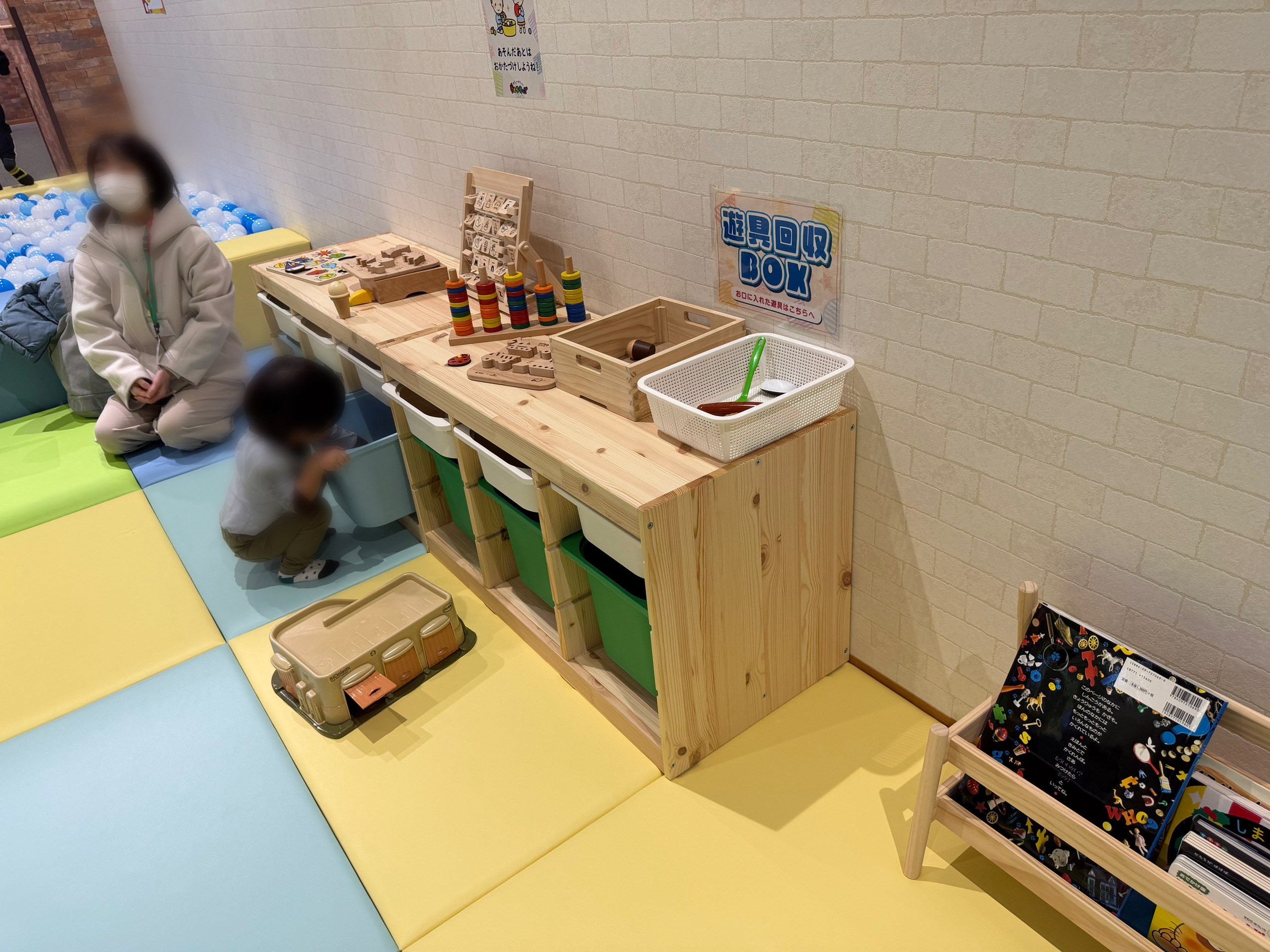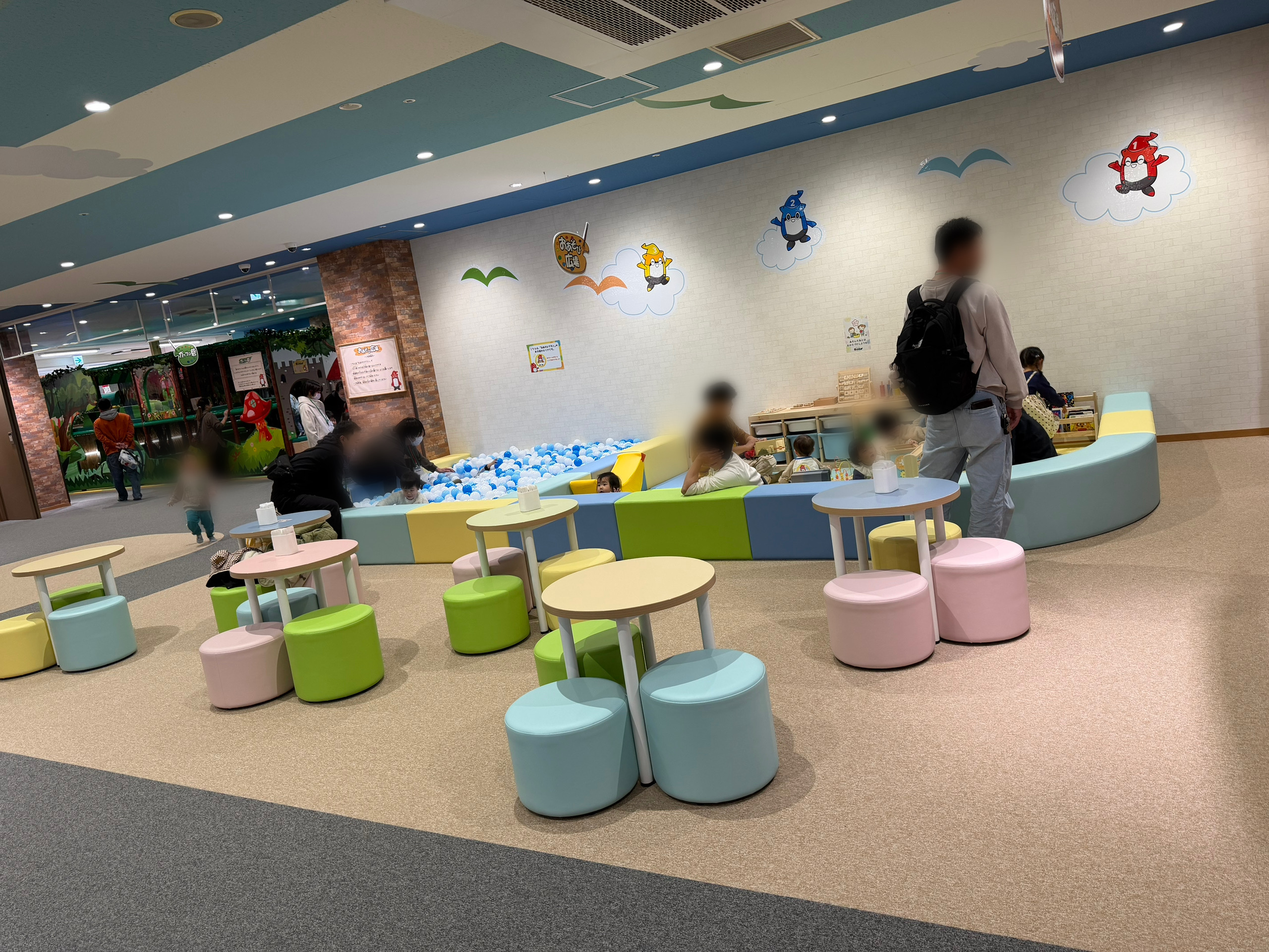 施設内には0〜3歳専用の「おあそび広場」があり、3歳以下の子はここで遊ぶことができます。