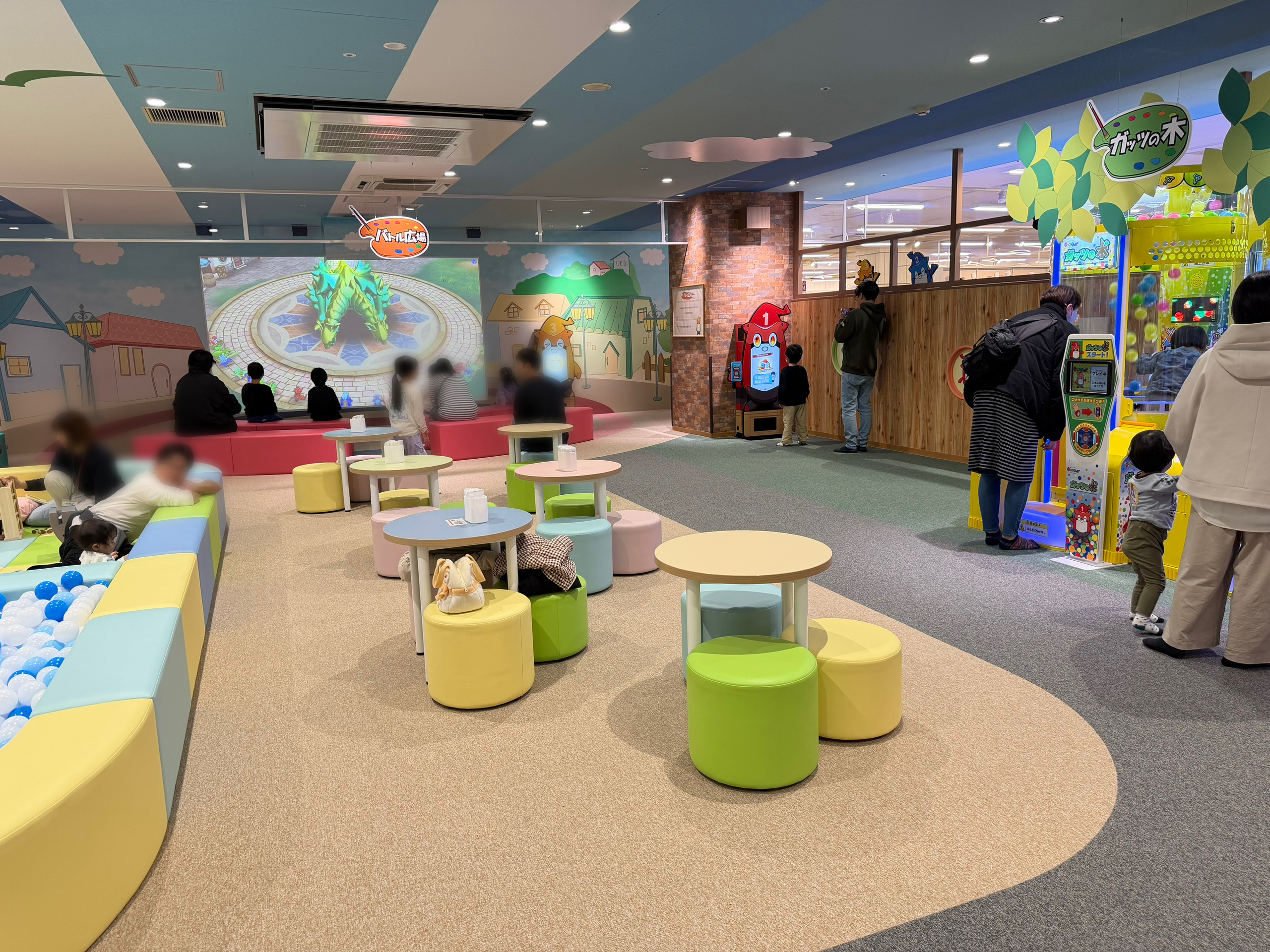 遊具は他にも、全身を動かして遊べるアスレチック系遊具「ガッツの砦」「ガッツの密林(ジャングル)」や、天井から落ちてくるボールを穴に入れることで「ガッツ」がチャージできる「ガッツの木」がありました。