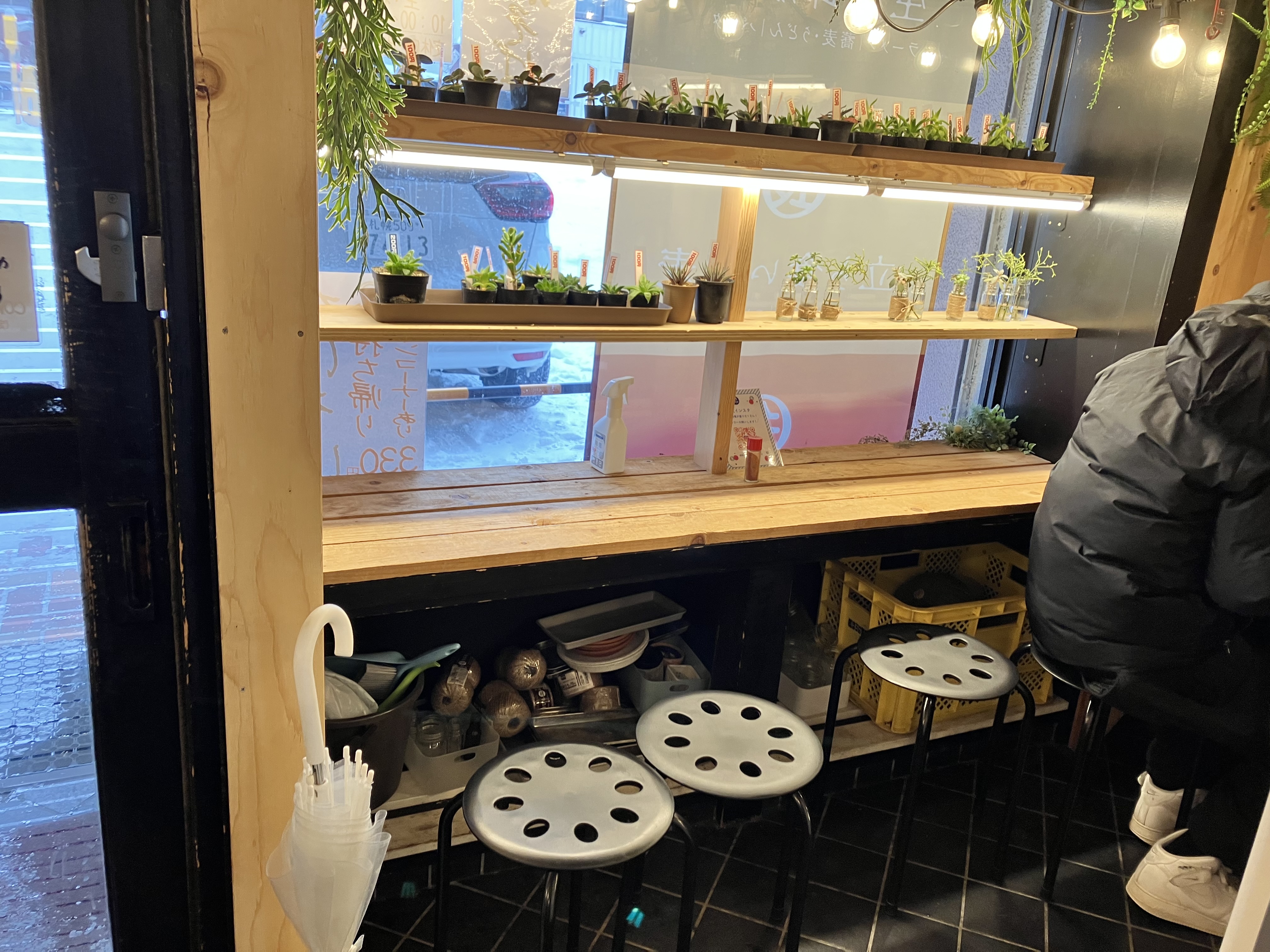 イートインスペースは店舗の約3分の1ほど。店舗入口の窓際席は椅子席になっていました。お客さんが居たので撮影出来ませんでしたが、7〜8人くらいが利用できる広さだったと思います。