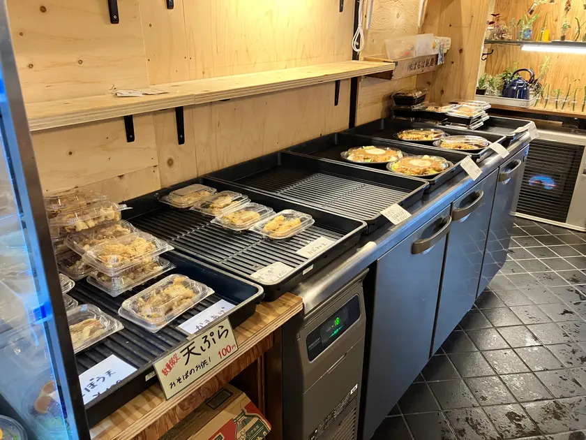 注文を受けてすぐ提供の立ち食い蕎麦もオススメ。立ち食いスペースには5脚ほどの椅子もあり、これはかなり嬉しい。空腹具合に合わせて、お弁当やお総菜などをプラスして楽しめるのもイイですね。