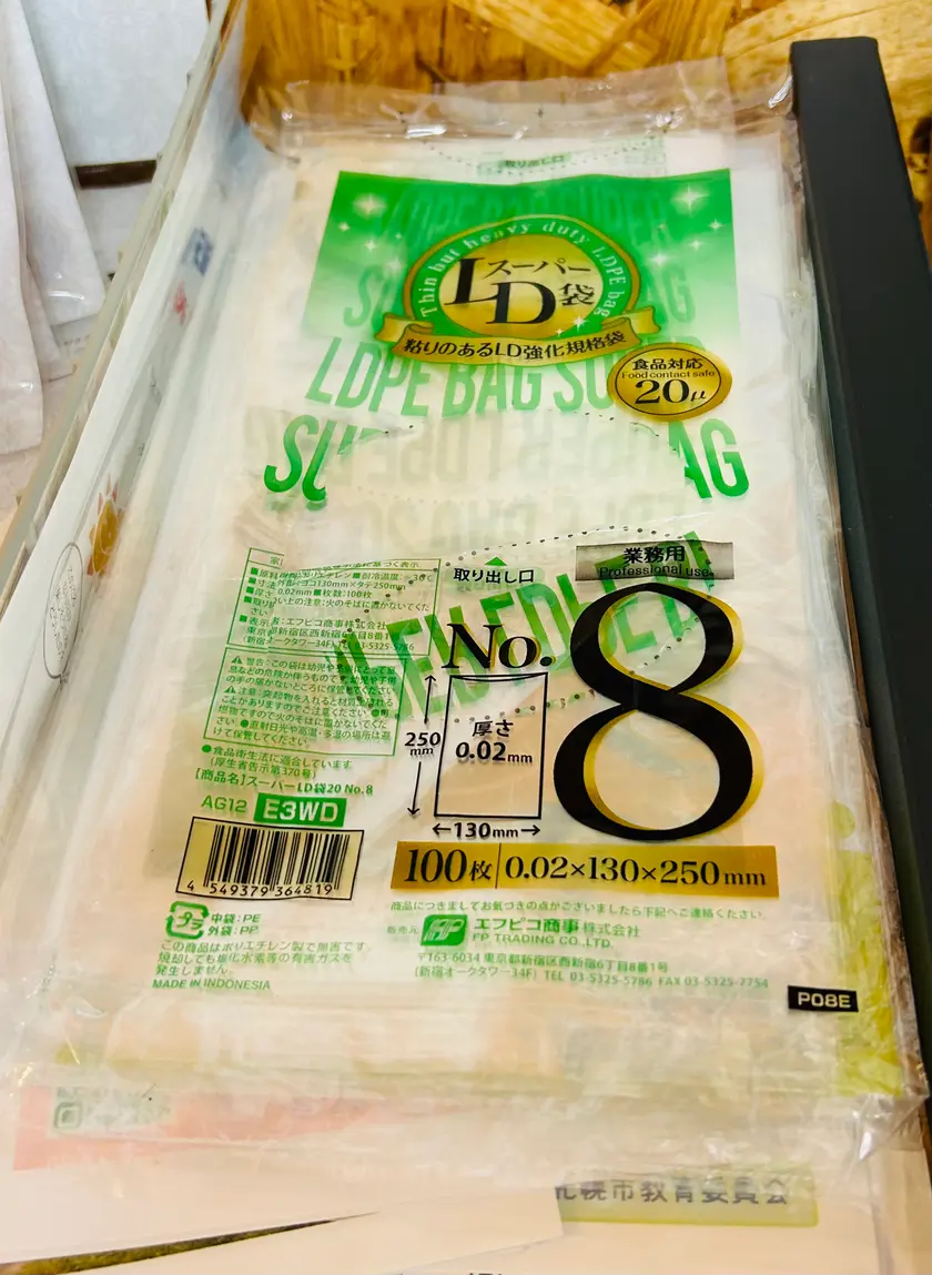 その後、店主さんが開いてくれるレジ袋に入れて終了となります。レジ袋に入れる瞬間にレジ袋に接触して落ちてしまっても確認後なので大丈夫です。
