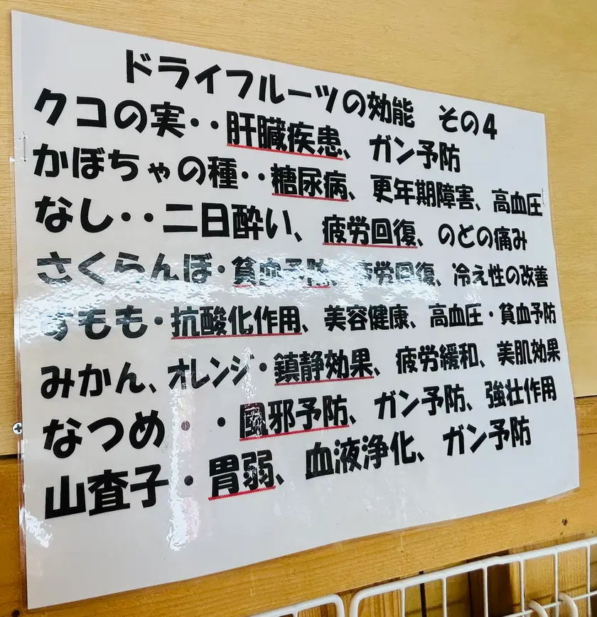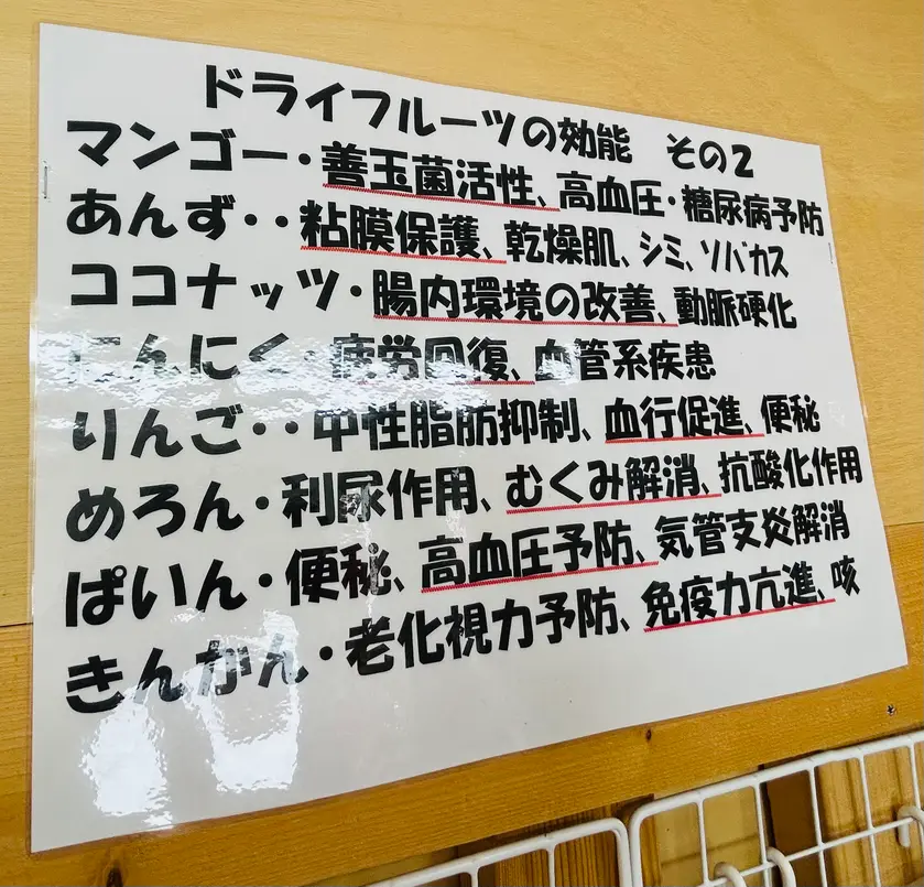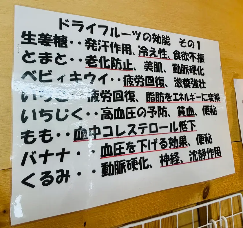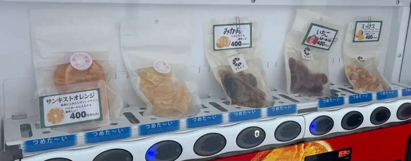 お店の営業は土日だけですが、店舗前の自販機でいつでもドライフルーツが買えますので、良きタイミングでドライフルーツを楽しんでいただけます。