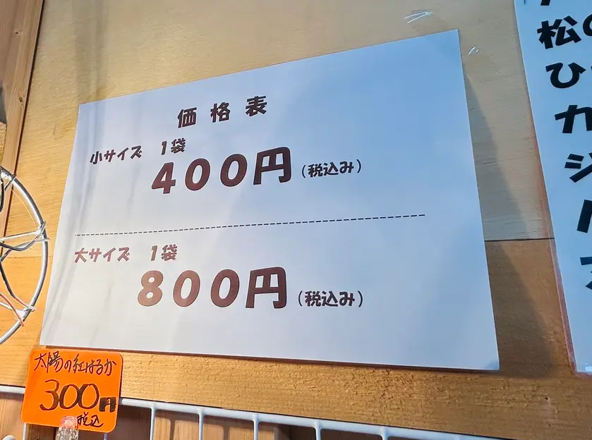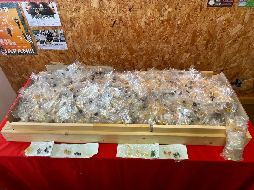 「詰め放題」は、お店を営業してすぐに始めたサービスではなく、お客さんとの会話から話が進んだようです。あちこちのイベントに参加することになって、詰め放題なら喜んでもらえるかな?と考え企画したものの、参加するイベントの会場によって、監督官庁の規約が違うとかで届出でかなり苦戦したことや、どうやったら多くの方に楽しんでもらえるか試行錯誤した話など、お話上手で明るい店主さんとの会話はとても楽しかったです。
