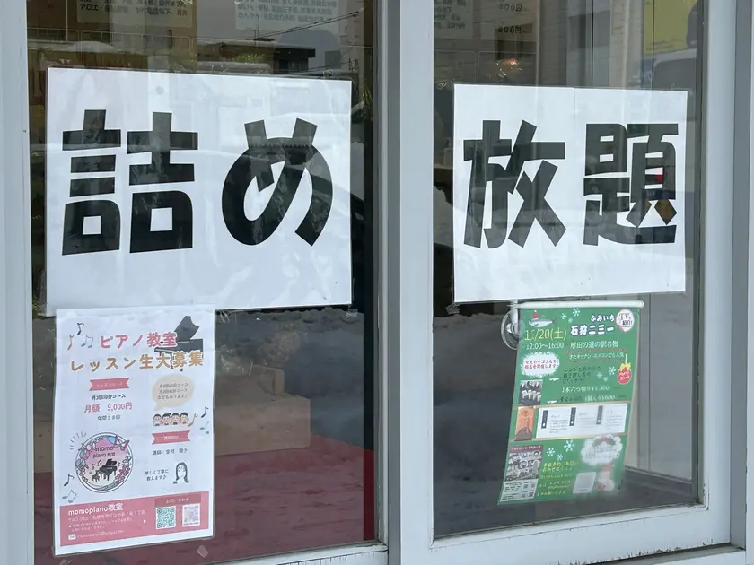 窓に貼られた詰め放題の文字!よっしゃ、やったるでー!