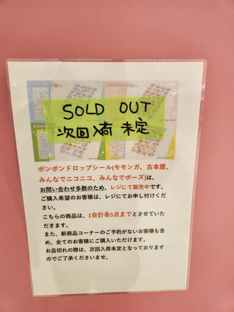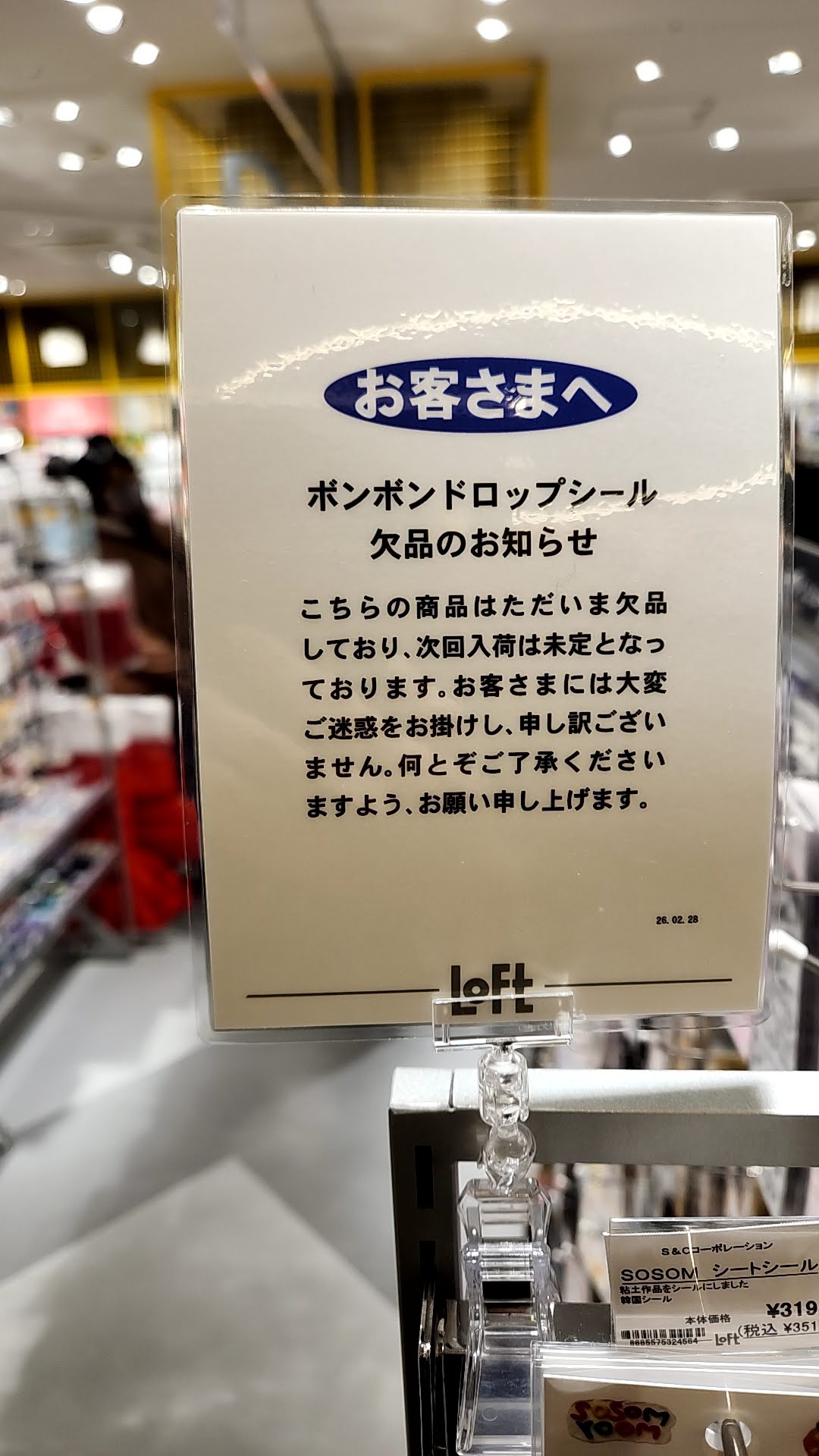 今回、札幌駅〜大通エリアの文具店を8店舗回った結果、ボンボンドロップシールそのものを店頭で購入することはできませんでした。やはり人気!!