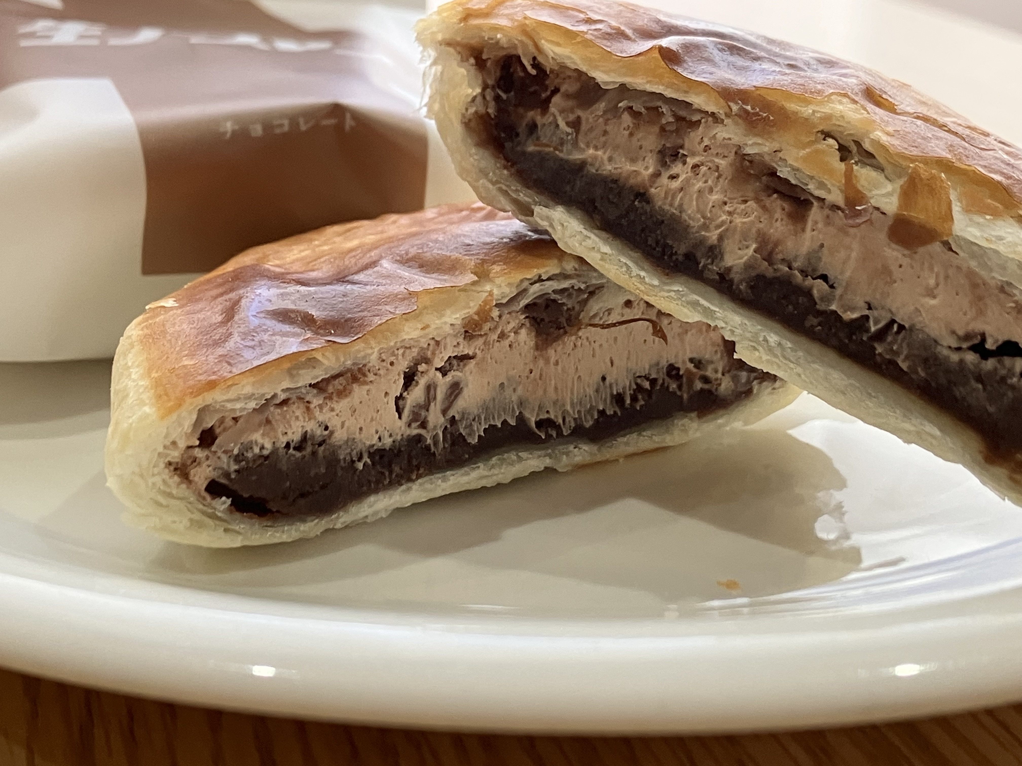 う、美味い!美味すぎる!!『チョコあん』と『チョコレート生クリーム』が特製のパイ生地で包まれており、中に入っているチョコチップの味と食感が美味さを倍増させている。『生ノースマン』を初めて食べた時の感動を思い出します。これは売れるわ(笑)