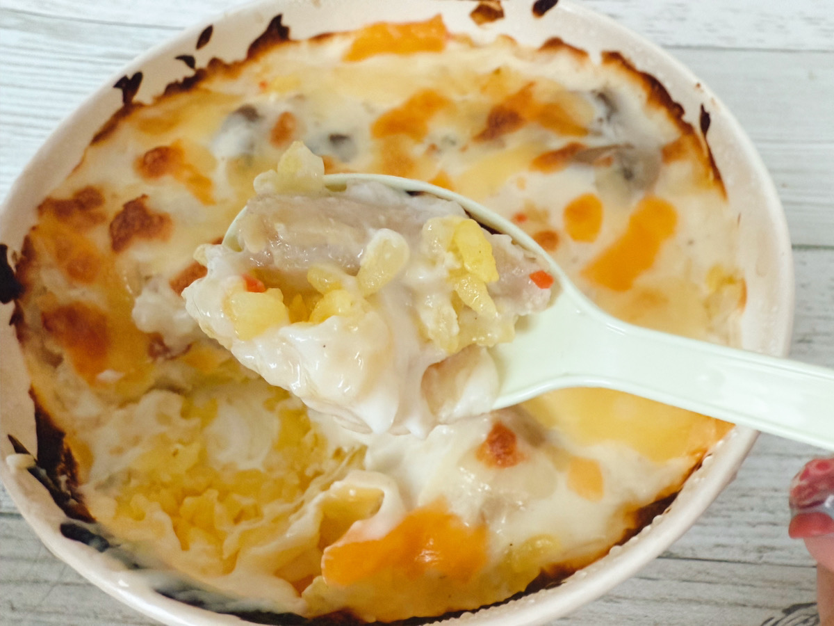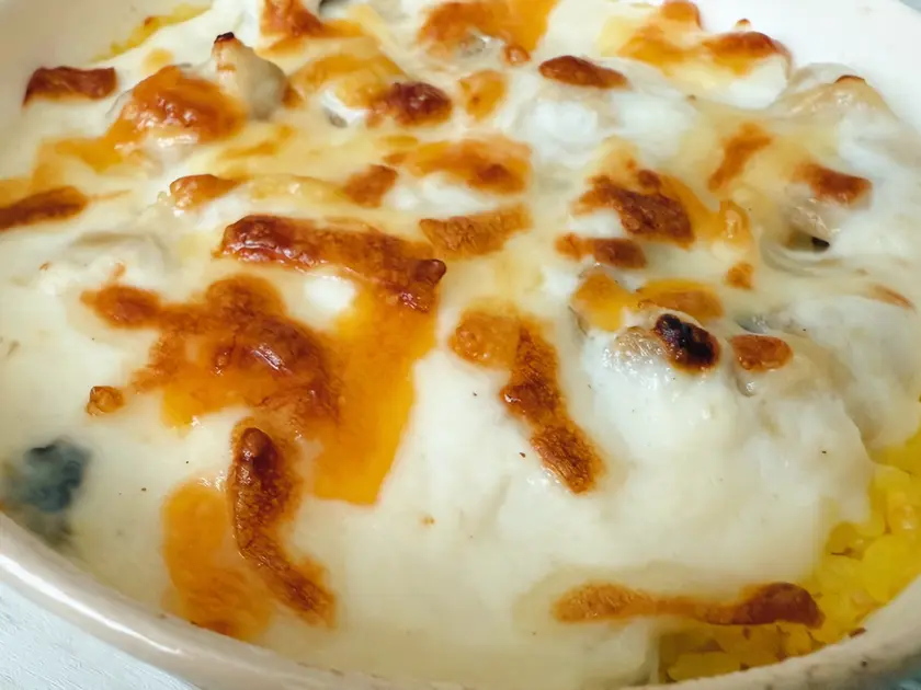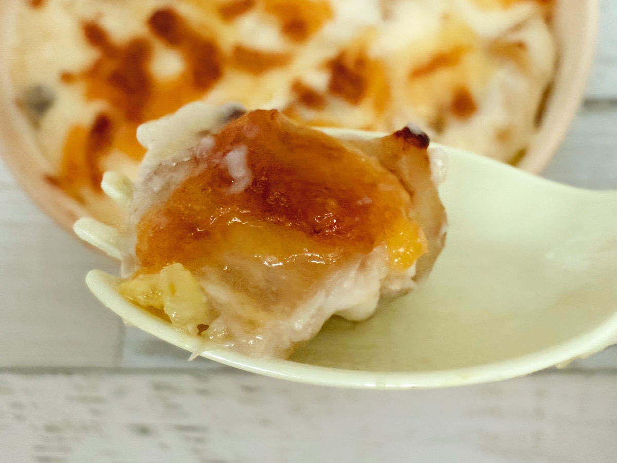 ひと口食べてみると、めちゃくちゃ美味しい!ホワイトソースとチーズがしっかりと絡まり合って、とても濃厚な味わいです。