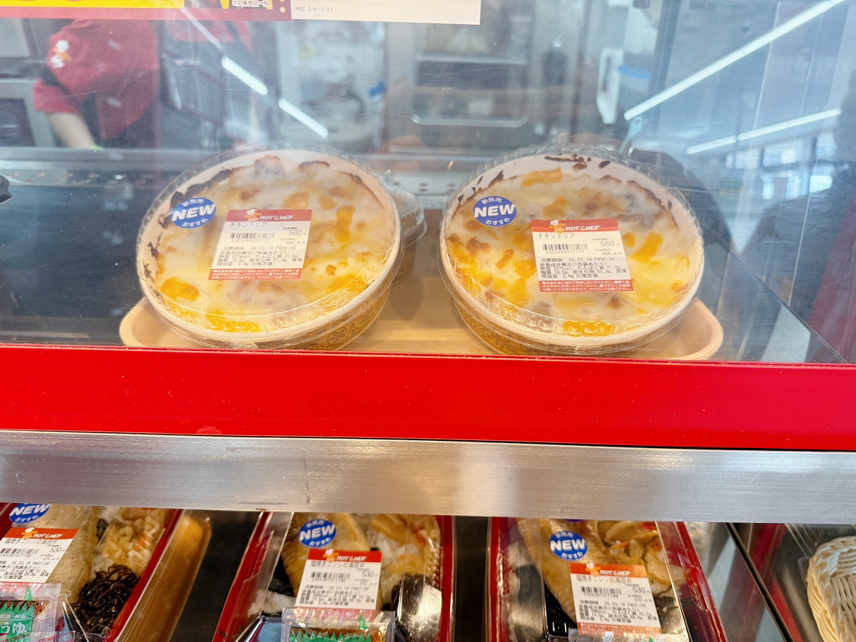 発売日から5日後に、やっっっと念願のチキンドリアに出会えました!私が訪れた店舗では、ホットシェフのショーケースの中にカツカレーと一緒に並んでいましたよ。ということで、迷わず購入!