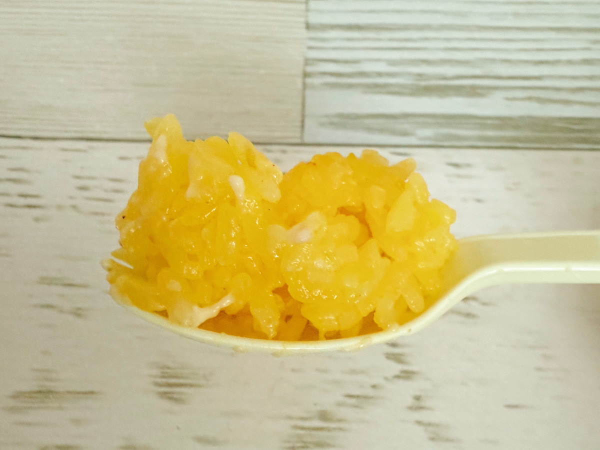 チキンもゴロっと大きく、とってもジューシー。食べ応えも十分です。セイコーマートのチルド商品でもグラタンは販売されていますが、店内でこんがり焼きあげたチキンドリアと比べると、チーズのとろけ具合が段違いですね。ホワイトソースも濃厚です。