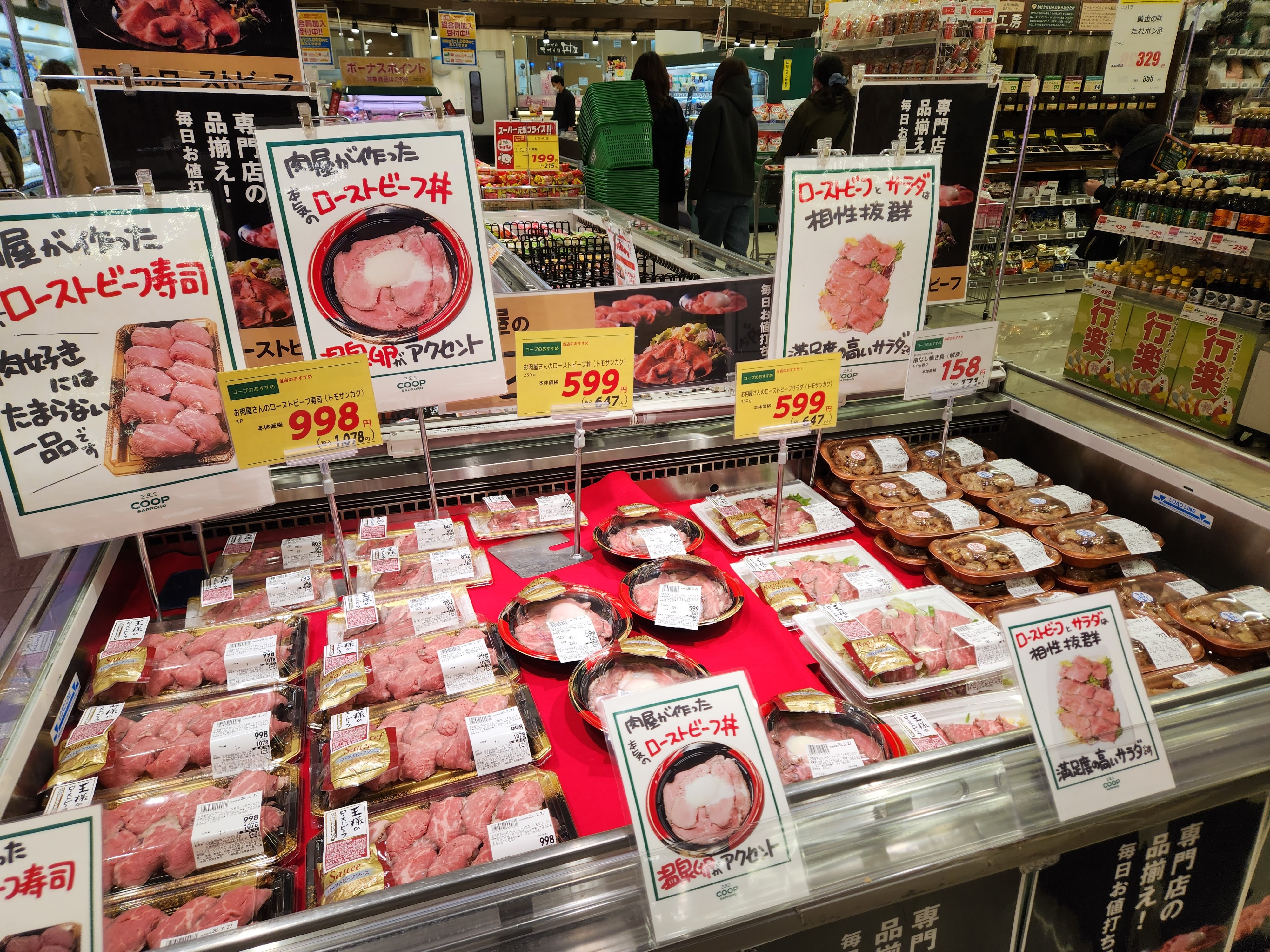 今回のリニューアルで、特に印象に残ったのがPOPの多さです。各所に大きなPOPが出ていて、店として「これを見てほしい」「これを食べてほしい」という気持ちがすごく伝わってきます。コープさっぽろも、大型POPやボリューム陳列で売り場全体のお買い得感を演出するとしていて、実際に歩いてみるとその狙いがよく分かりました。