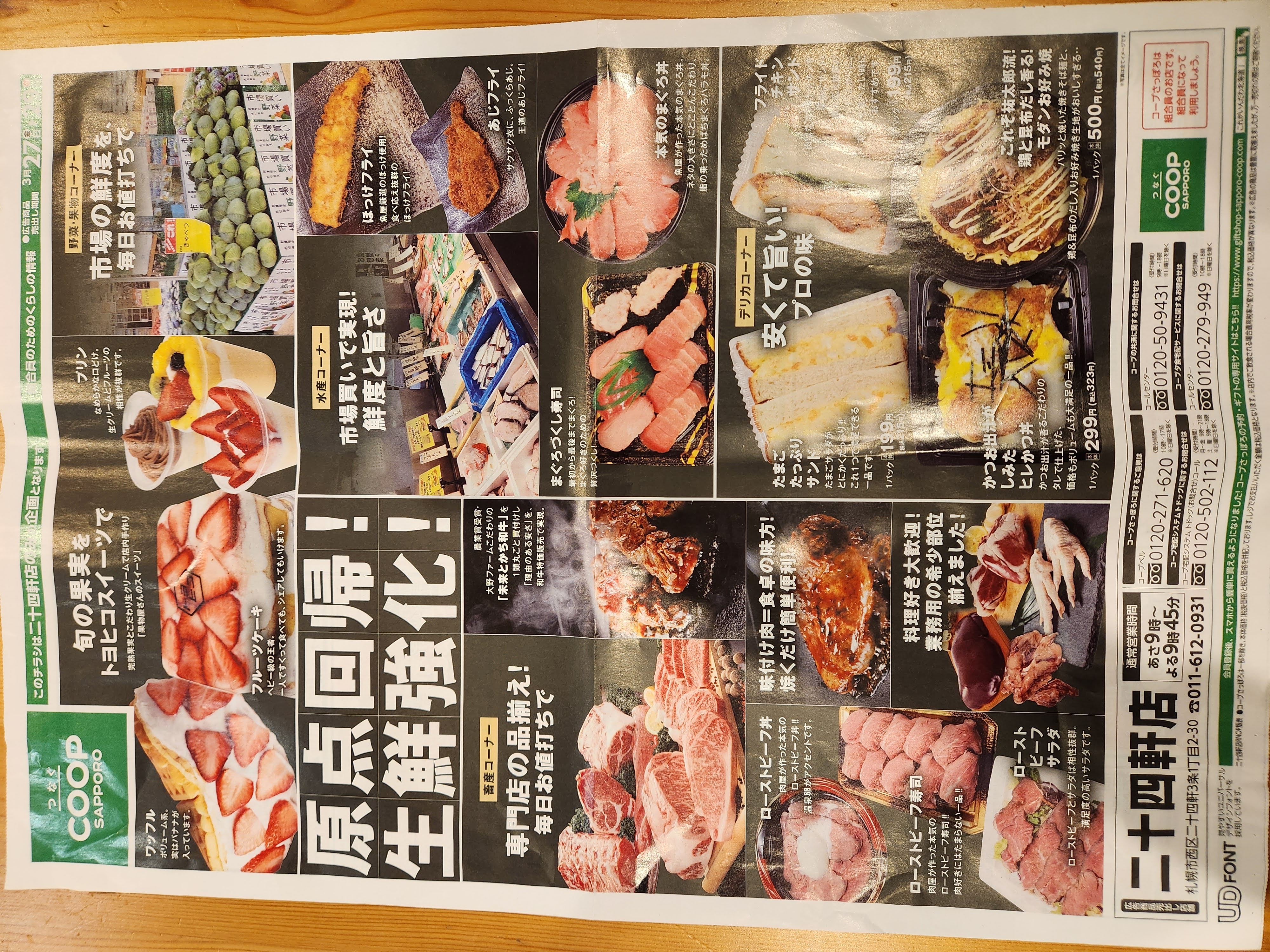 3月27日、札幌市西区の「コープさっぽろ二十四軒店」がリニューアルオープンしました。今回のリニューアルでは、青果・鮮魚・精肉・デリカを強化し、コンセプトは「食いしん坊や料理好きに応える店」。大型POPやボリューム感のある売り場づくりで、お買い得感も打ち出しているのが特徴です。
